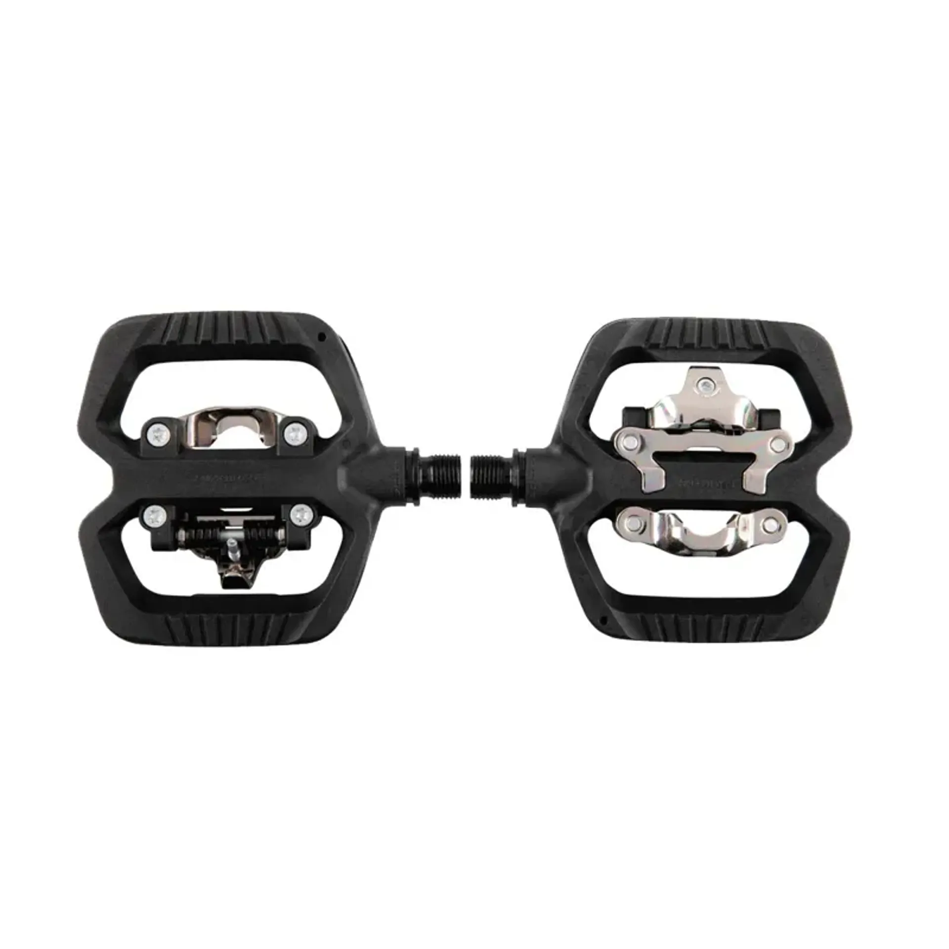 The clipless side is based on a mechanism compliant with the micro cleat standard, compatible with spd cleat. This mechanism features across the entire range and enables simple and secure clip-in and clip-out. The retention adjustment system enables an adjustment from 5 to 10. All the pedals are supplied with the easy cleat with 30% easier clip-in and more natural multidirectional clip-out, offering the possibility of a movement combining rotation and traction.